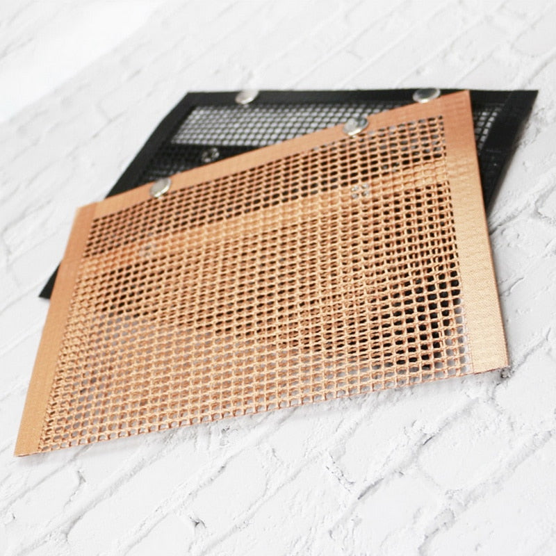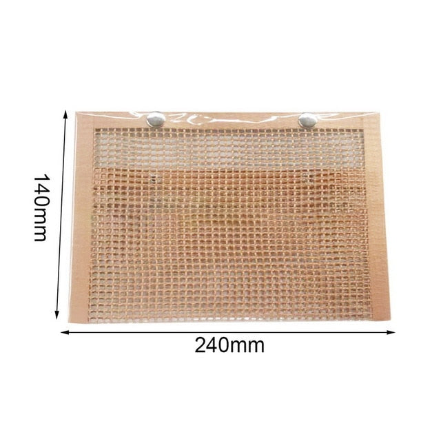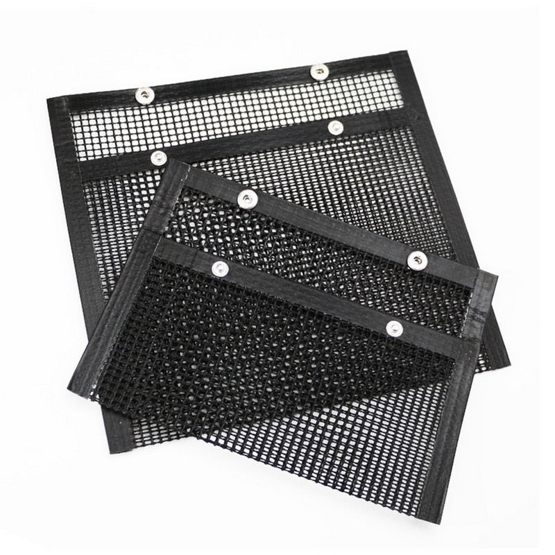 Veggies are falling, and they can't get up. The new and improved design on these reinforced grilling bags are here to help: Their grommeted edges keep your veggie slices, tofu cubes, and other kebab favorites safely secured from falling through the slats. Plus, they're easy to flip and do a good job of keeping tasty juices on your food and not all over your grill. Less mess, more marinade? It's in the bag, baby. Made in China.