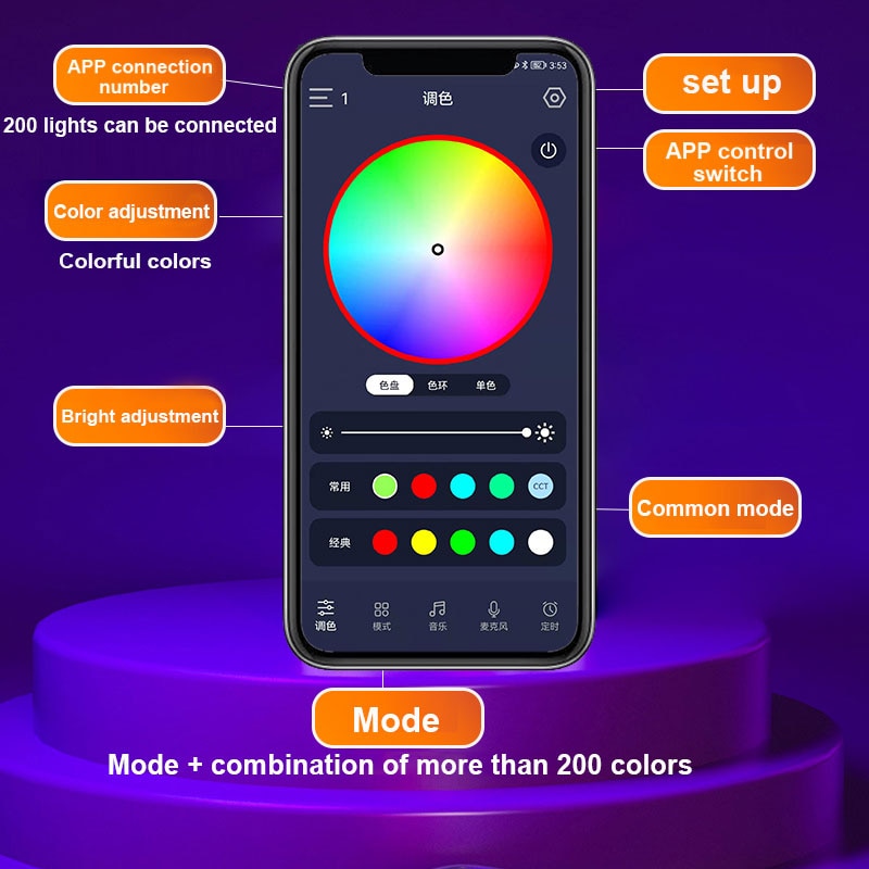 2. Built-in chip, support APP control lighting effect