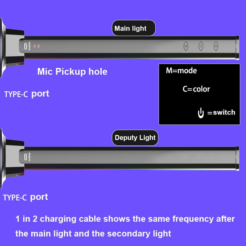 1. Built-in highly sensitive pickup, pick up external sound signals, the light bar can be synchronized with the screen music or sound smoothly, dazzling colors will add more color depth to your room, creating a fascinating and fun gaming experience